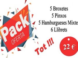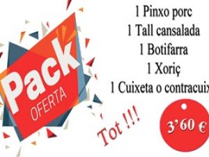 PACK 3'60 (1pinxo porc, 1 tall cansalada, 1 botifarra, 1 xoriç i 1 cuixeta o contra-cuixa).
