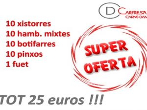 PACK 35€ (5 u. de cuixeta, 5u. contra-cuixa, 10 u. de botifarra, 10 u. xoriç, 10 u.ventresca i 10 u. pinxo)